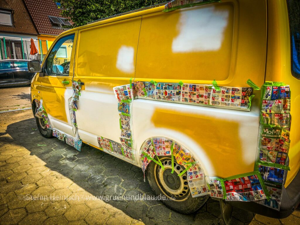 3 Wochen schleifen und ausbeulen dann der große Tag. Gelb hätte mir schon gut gefallen, aber Gelb lässt sich nicht gut lackieren. Also dann eben neutral weiß.